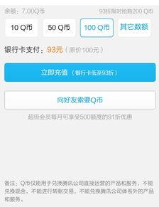 那么,购买91折q币后,你又能用来做什么呢?其实,用途非常广泛。你可以用它来购买腾讯旗下的游戏道具、音乐、视频会员等。而且,随着腾讯业务的不断拓展,q币的用途也在逐渐增加。